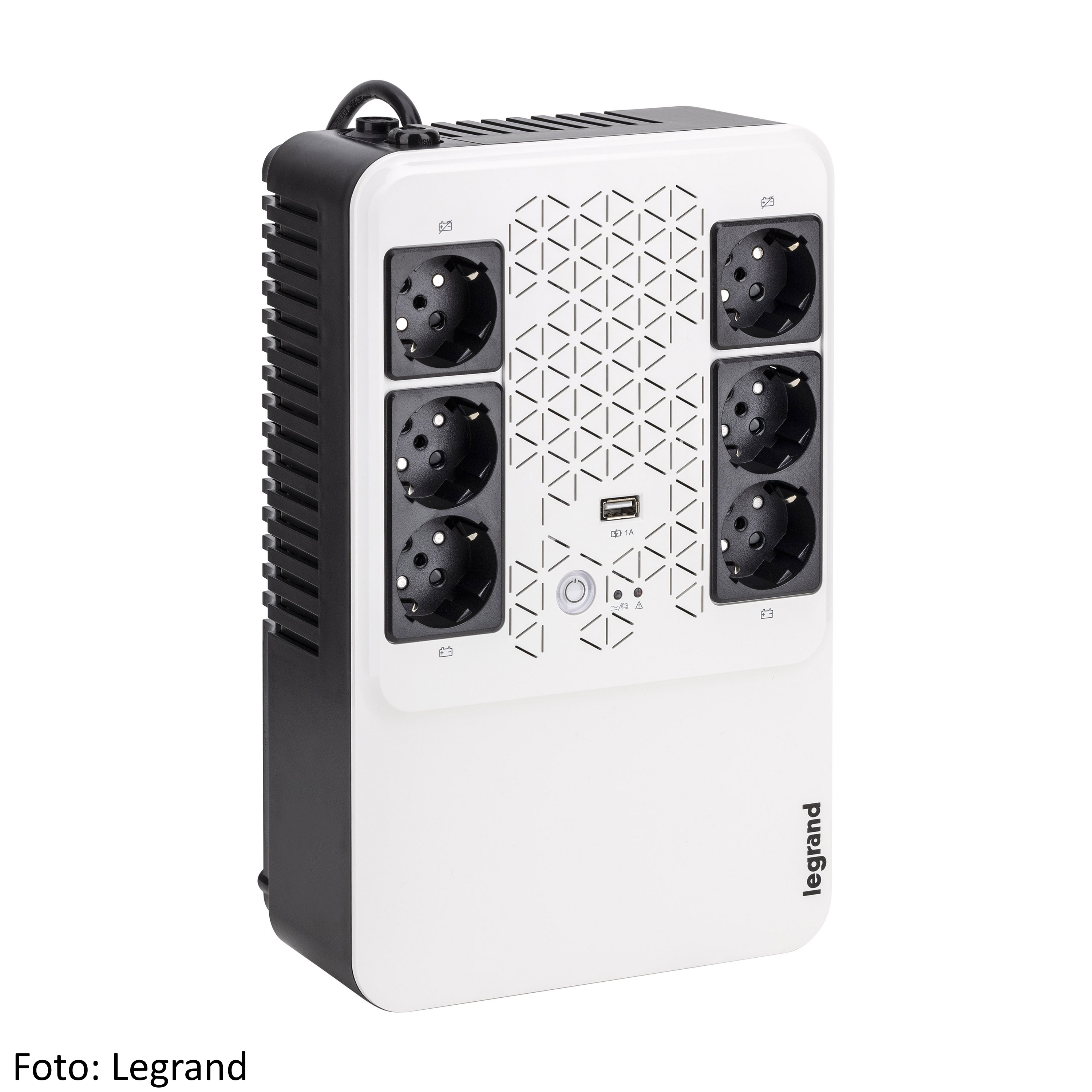 UPS System 600 VA (360 W), Line Interactive, Backup Time 5 min, 6 × Schuko Outlets