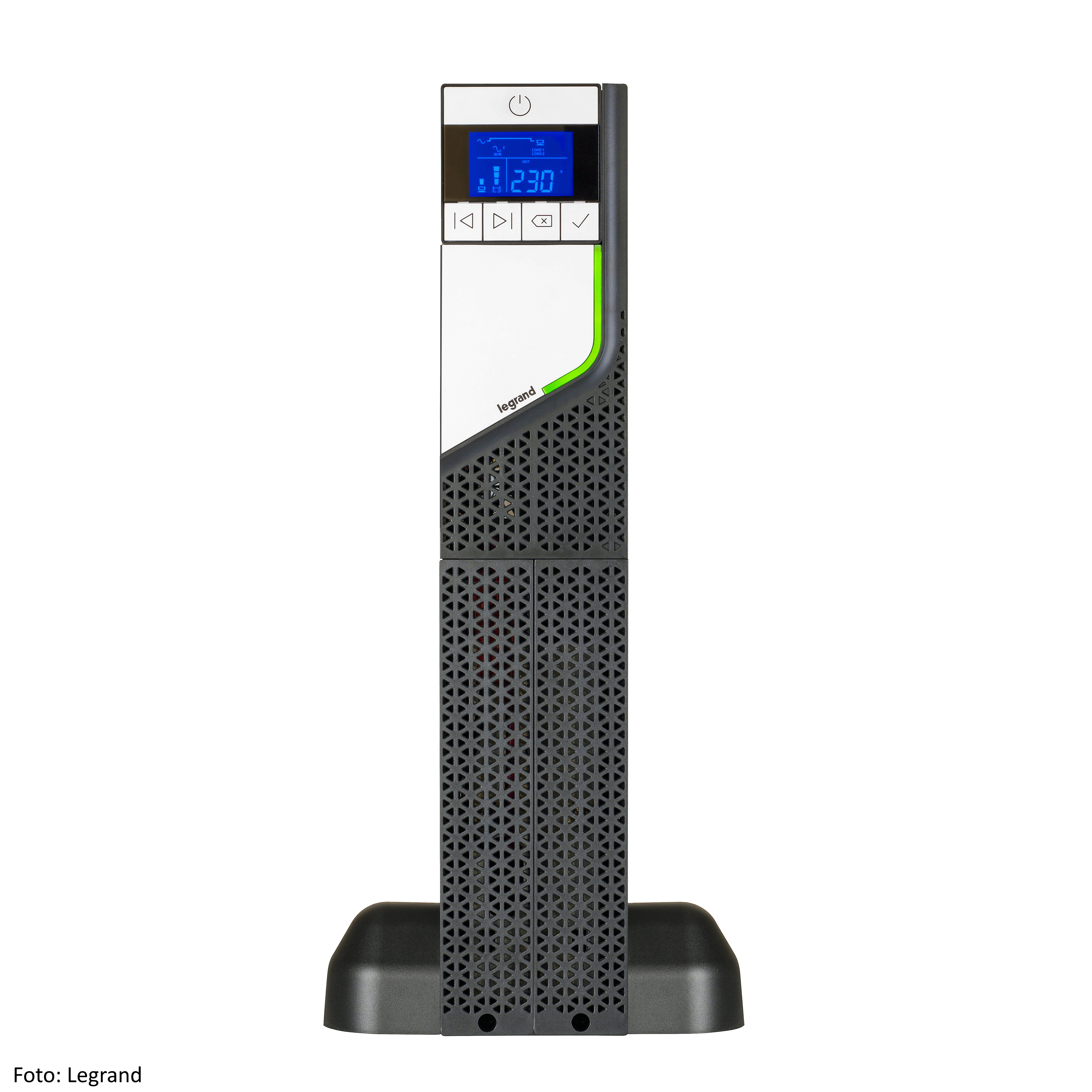 The integrated electronic voltage stabilizer (AVR) provides connected devices with effective protection against power grid disturbances. This UPS features 8 × IEC 320-C13 output sockets.